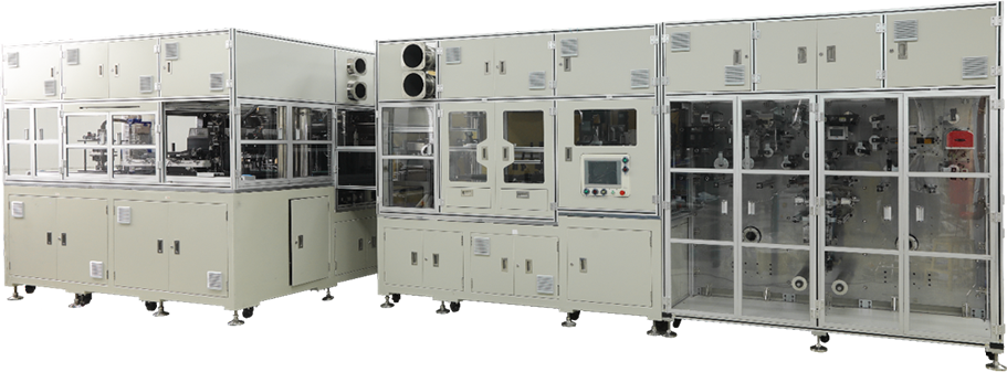 疊片對齊度檢測機構 / 電芯轉移機構 / 電芯下料機構 / 貼膠機構